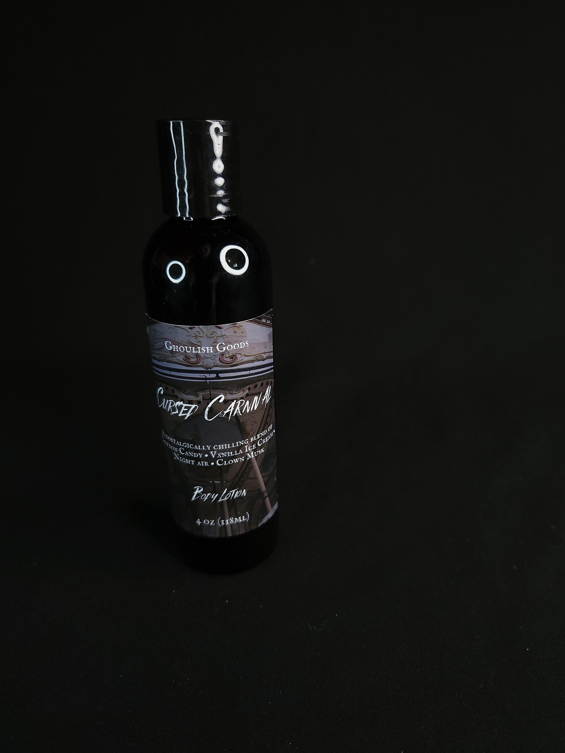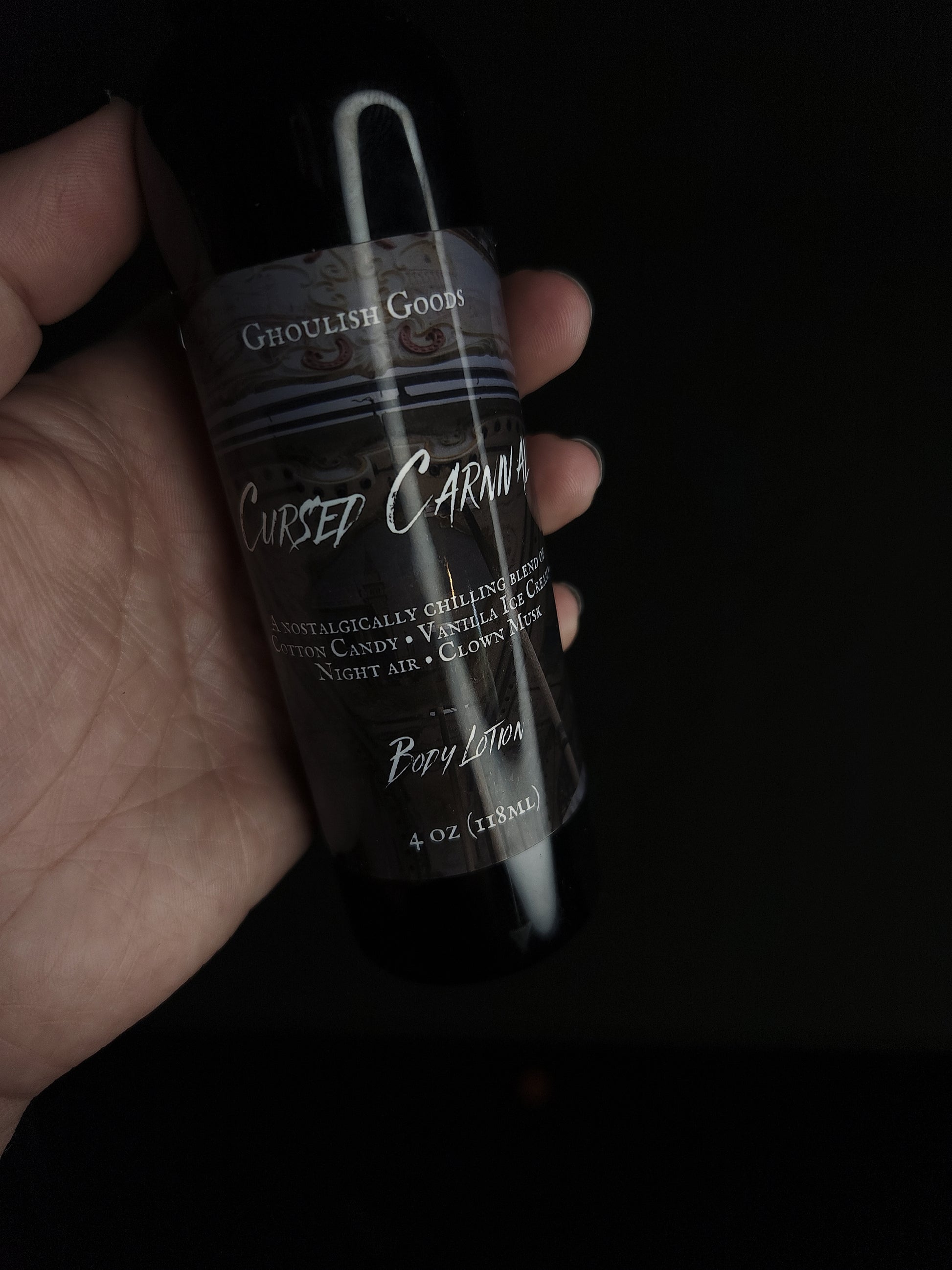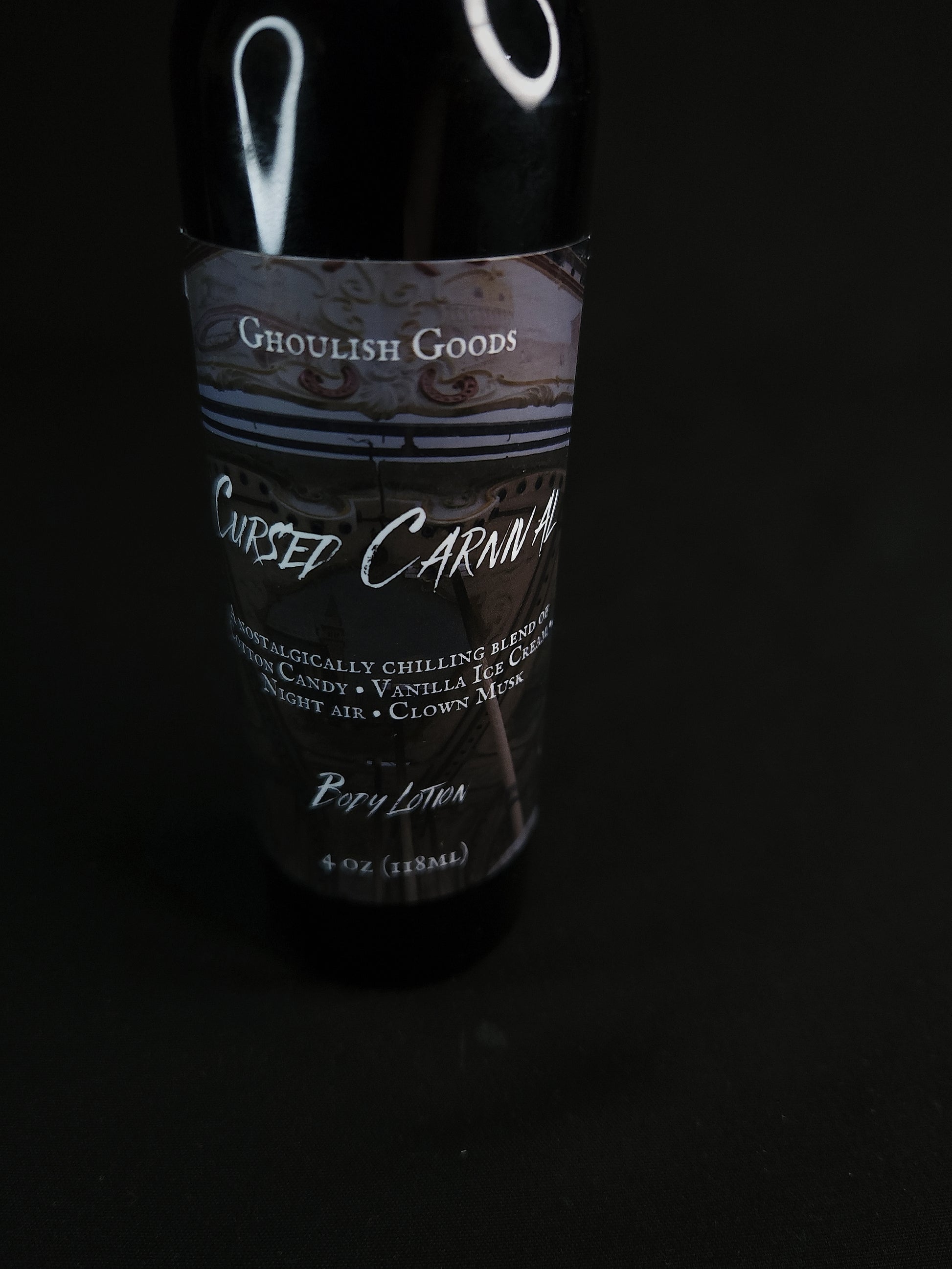 Cursed Carnival is a nostalgically chilling blend of pink cotton candy, vanilla ice cream, night air, and clown musk.