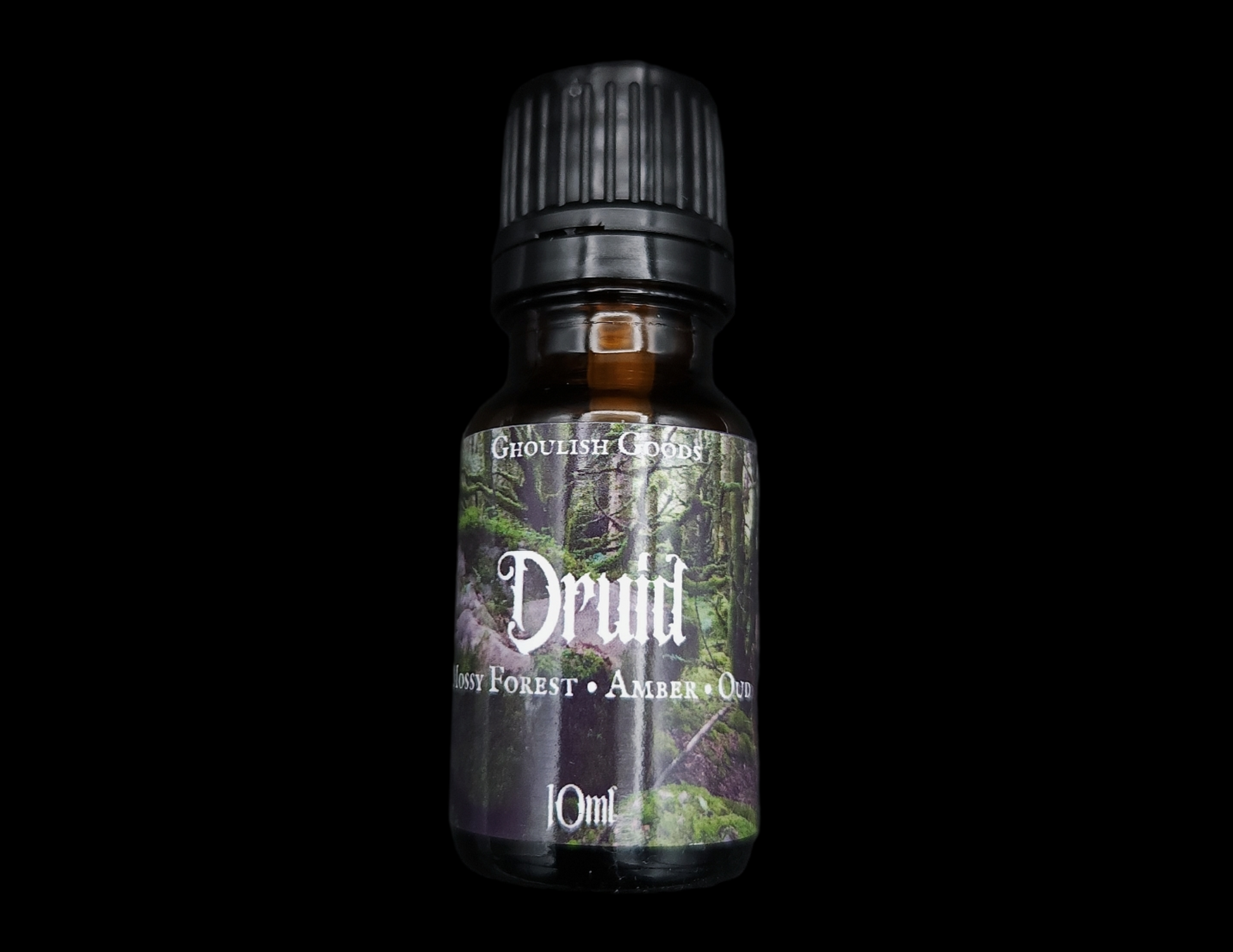 Druid is an earthy blend of Mossy forest, amber and oud wood.