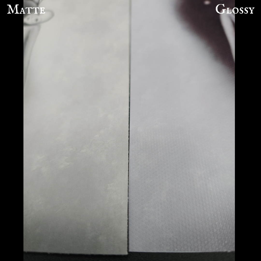 Gloss- high definition photo quality, strong color vibrancy, textured on the front and buttery smooth on the back
