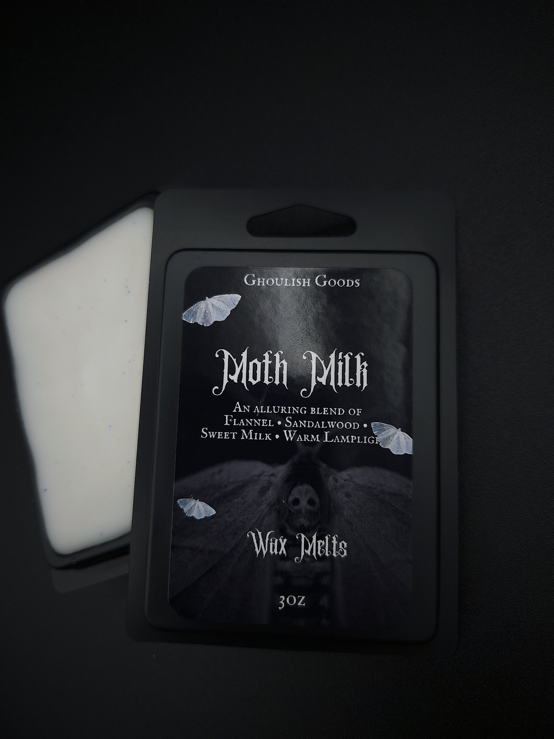 Moth Milk is an alluring blend of Flannel, woody musk, sweet milk, and warm lamplight.