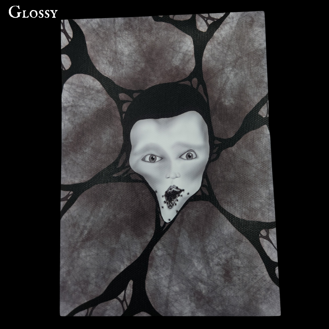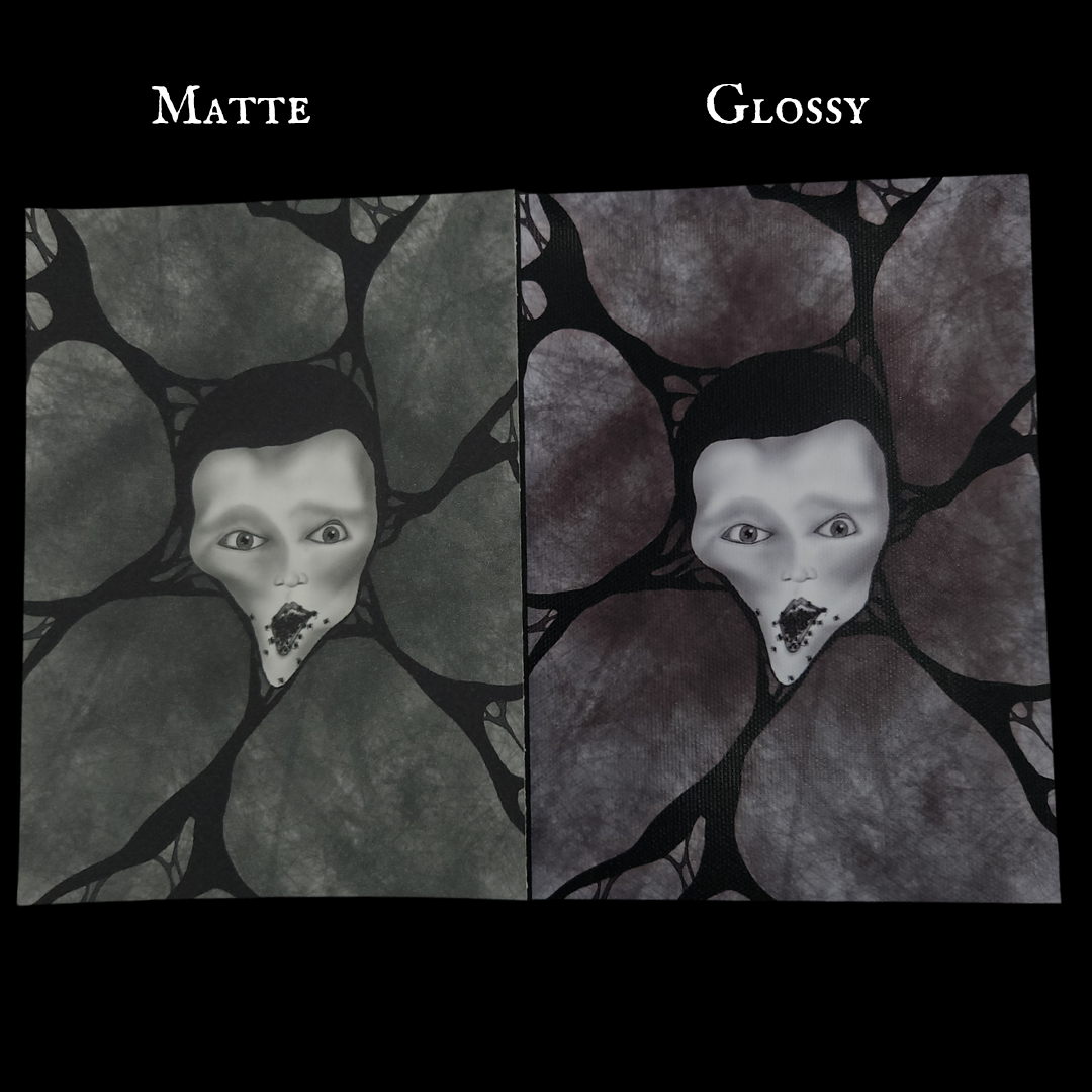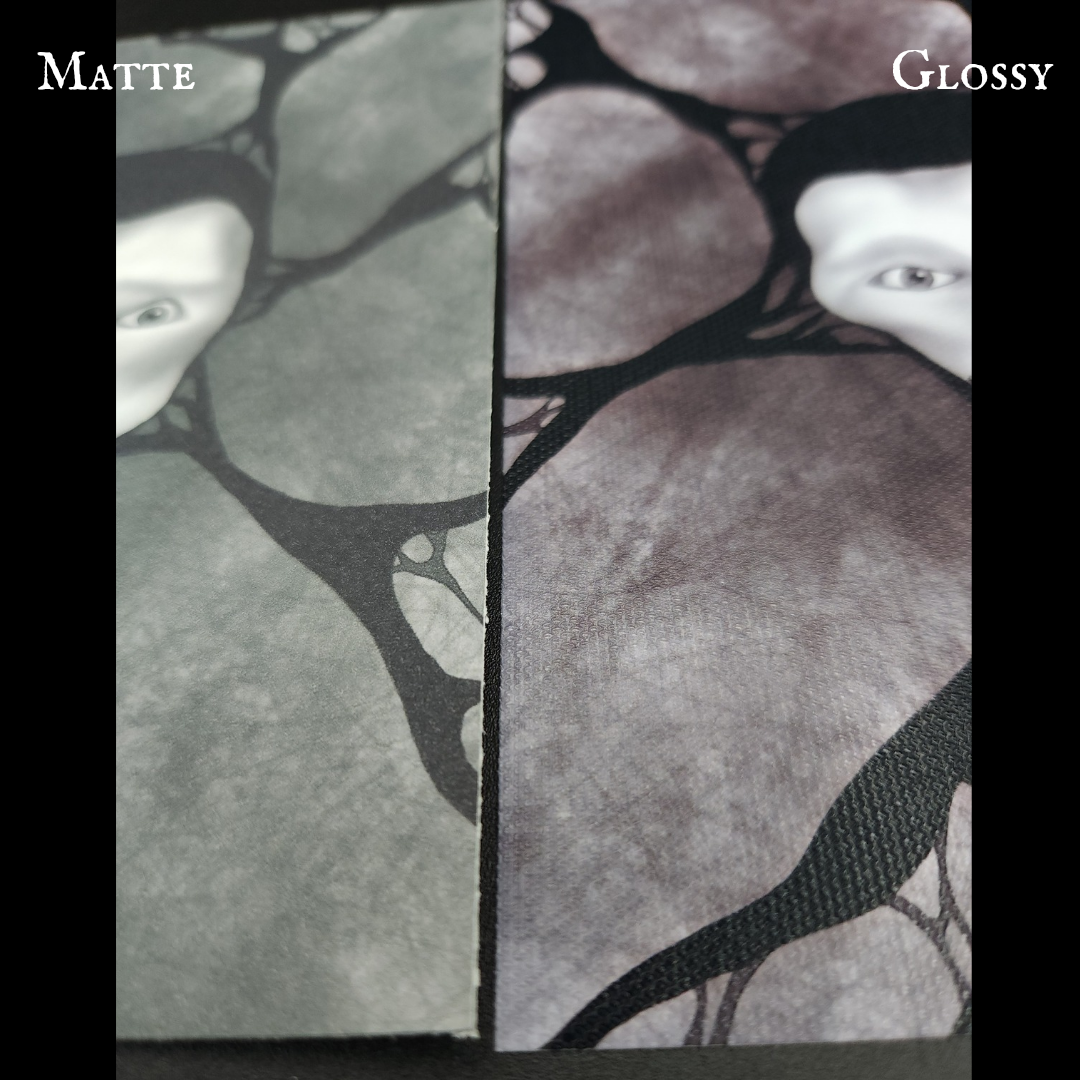 Gloss- high definition photo quality, strong color vibrancy, textured on the front and buttery smooth on the back