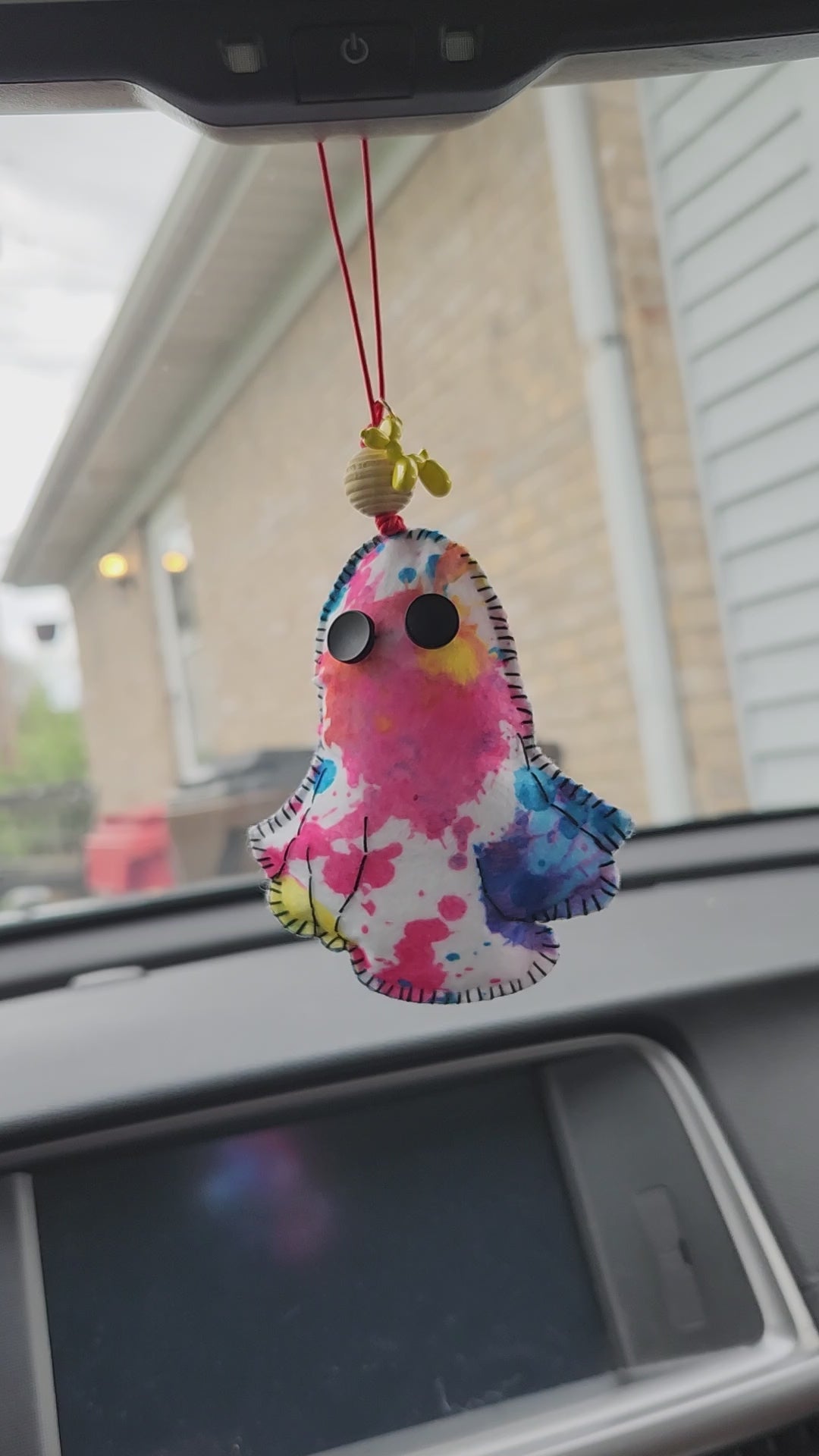 This is a handsewn ghost plushie car freshener. It is designed to be hung from a rear view mirror. Each ghost is unique and individual.
