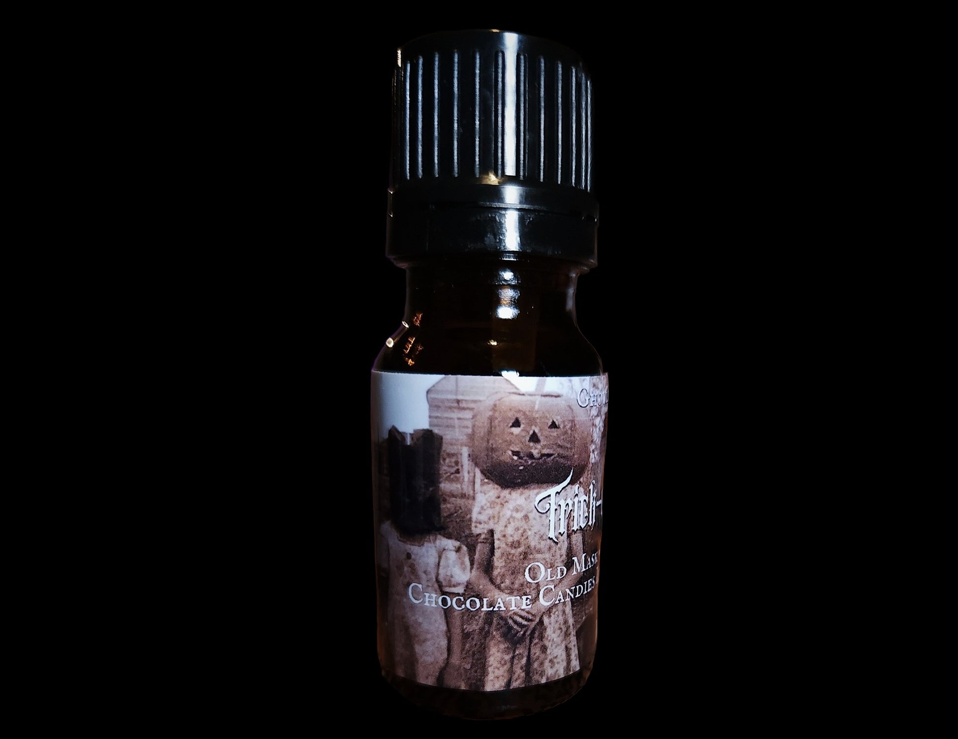 Trick-or-treat is a blend of old masks, fall leaves, and chocolate candies In the bottom of a bag. It is inspired by vintage Halloween costumes with a strong mask smell at the top that dries down and mellows out over the crisp fall leaves, autumn air and the sweetness of assorted chocolate candies. Carefully blended to mimic the experience of trick or treating in an old Halloween mask. This is a gender neutral scent that anyone can enjoy.