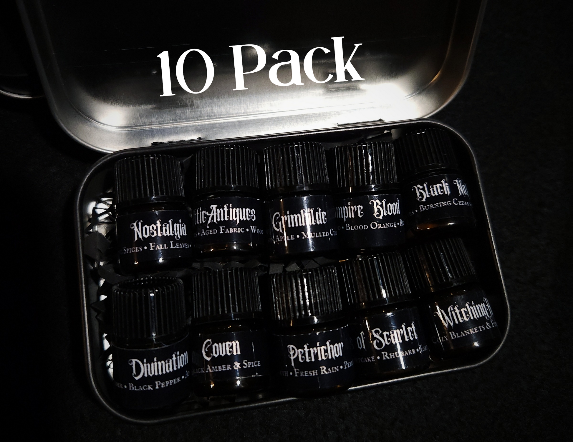 This is a perfume sample pack. You will receive 1ml amber glass sample bottles. They come packed in a reusable matte black tin case. You can choose 4,6,8 or 10.